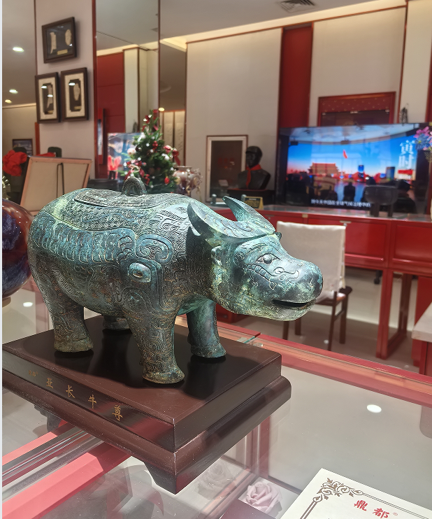 新店面积约600平方米,司母戊鼎、亚长牛尊、甲骨文、各种安阳特色文创应有尽有。